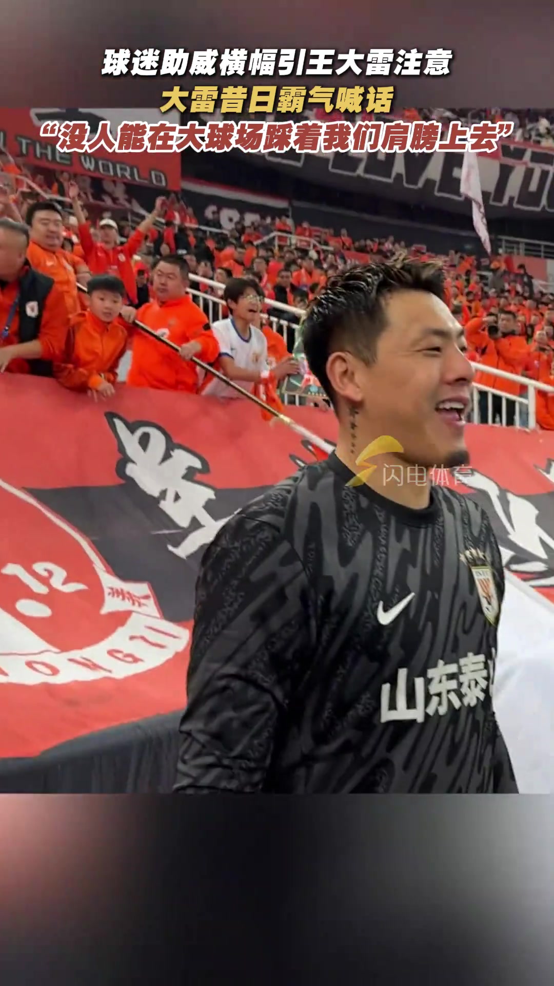 球迷横幅展示王大雷霸气喊话没人能在大球场踩着我们肩膀上去
