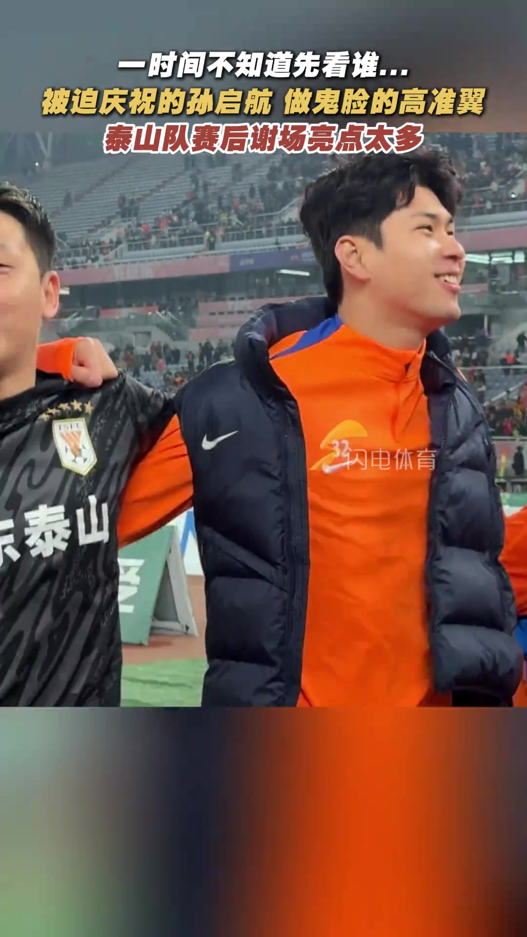 被迫庆祝的孙启航做鬼脸的高准翼泰山队赛后谢场亮点太多