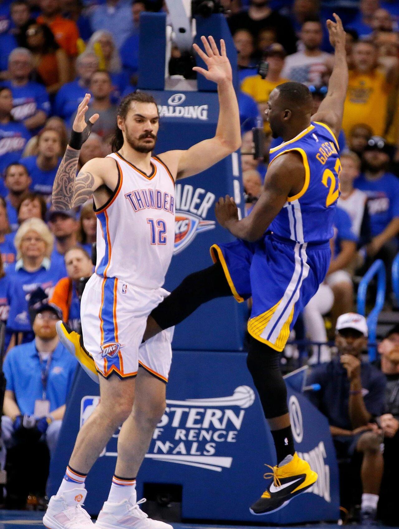 正所谓一个巴掌拍不响,亚当斯酷爱身体对抗,也精通各种挑衅手段,甚至会在罚球线用汗湿的脸蹭对手,简直是字面意义上的咸湿大只佬。2016年,亚当斯被教练组和球员票选为“联盟第二脏”,仅次于名声在外的德拉维多瓦。