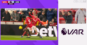 第81分钟,VAR介入检查诺丁汉森林球员手球,最后未予判罚