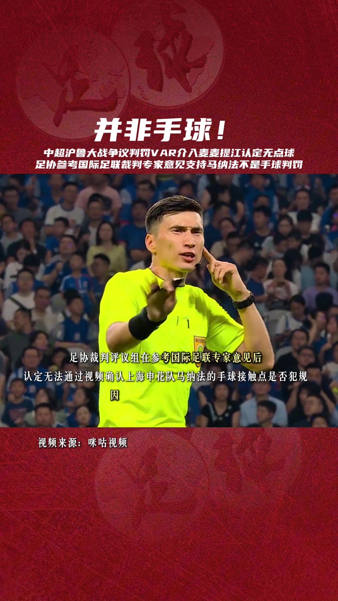 足协评议参考国际足联裁判专家意见支持马纳法不是手球的判罚