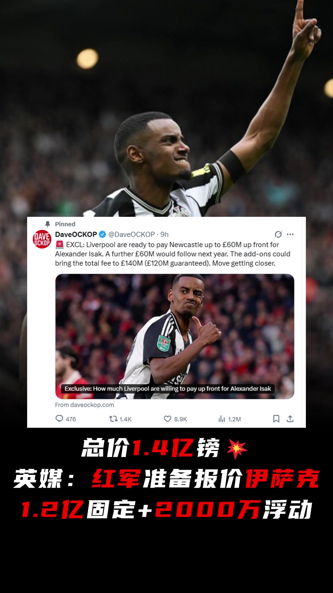 名记利物浦不会再报价伊萨克除非纽卡改变立场并联系利物浦