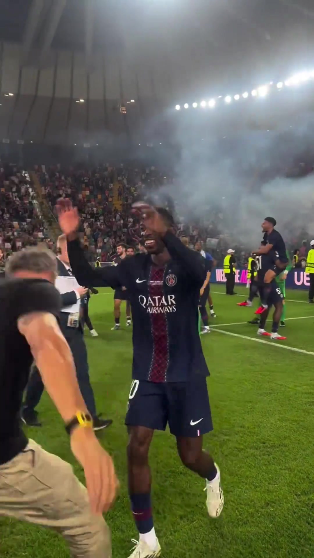 登贝莱当选欧超杯全场最佳球员赛后恩里克将他抱起庆祝