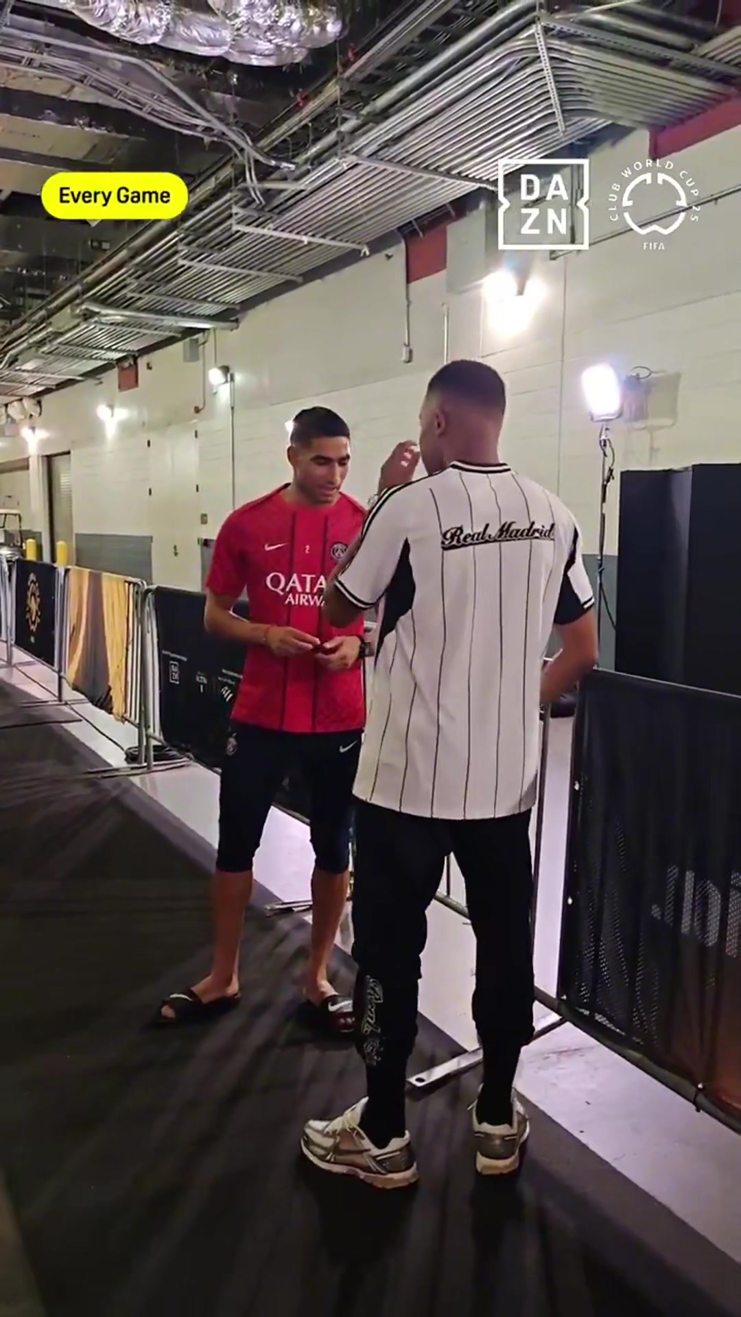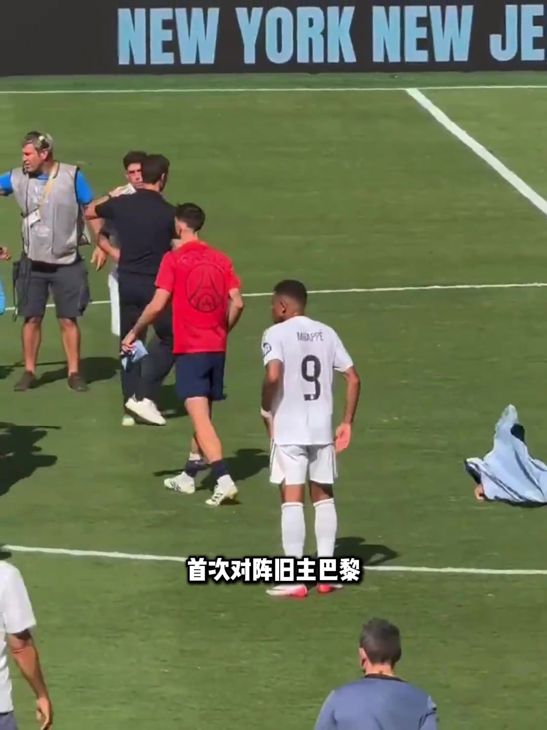 好友赛场相遇姆巴佩赛前和阿什拉夫聊天拥抱致意