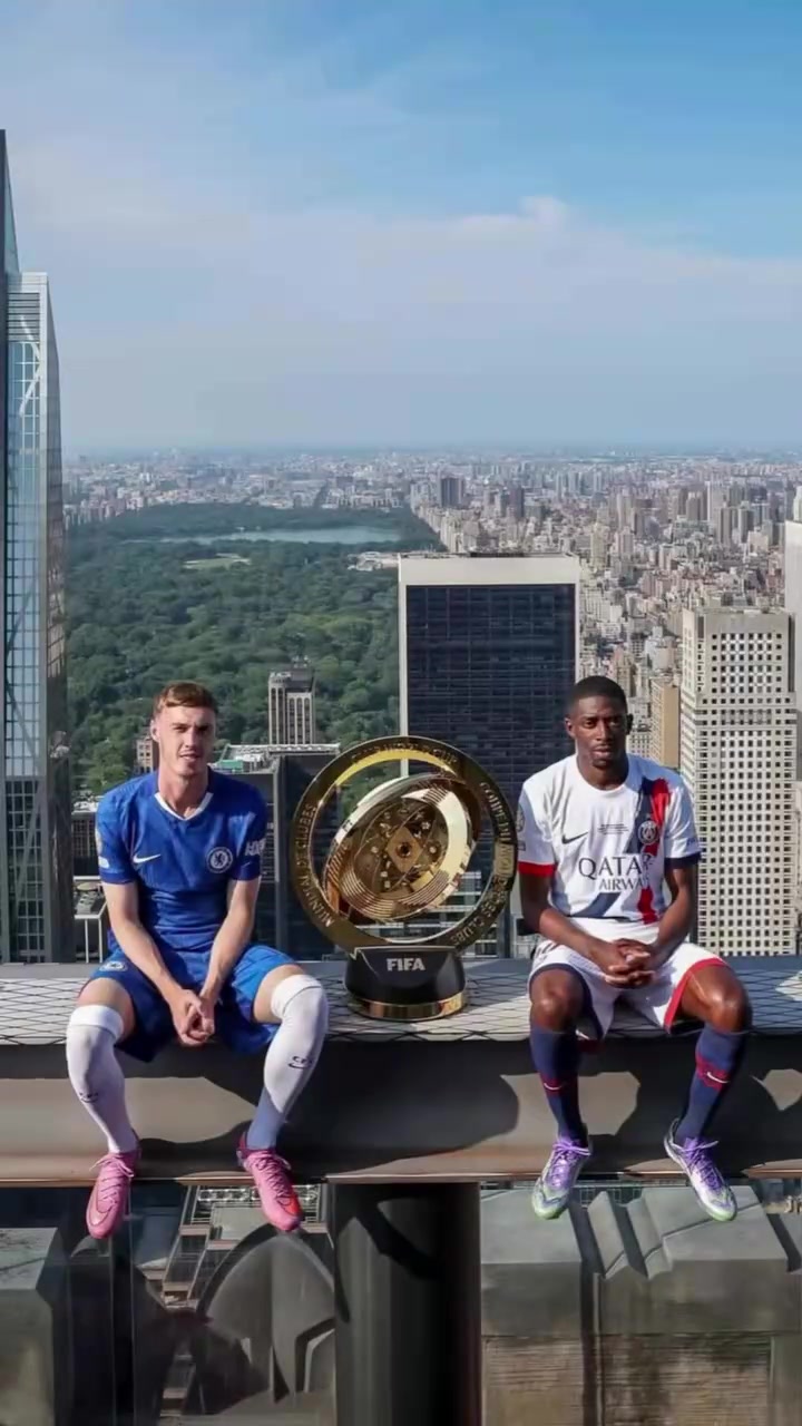 谁能拿下冠军帕尔默登贝莱在纽约高空与世俱杯奖杯合影