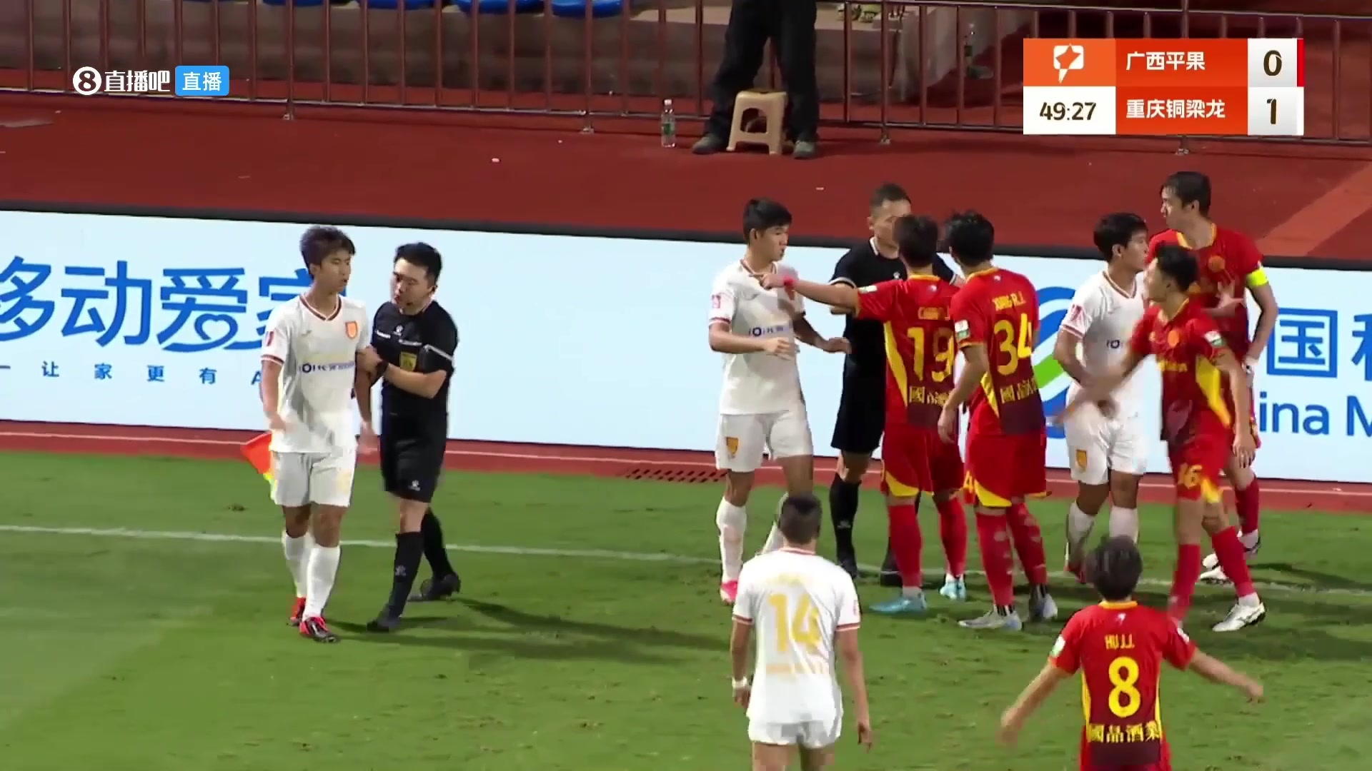 引发不满铜梁龙球员把对方撞伤后摊手表示无辜裁判挡在中间