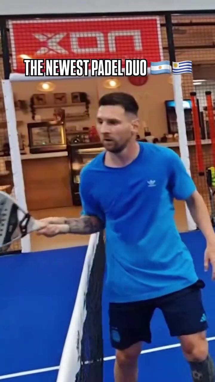 比踢球还认真名场面梅西和苏亚雷斯一起打板网球