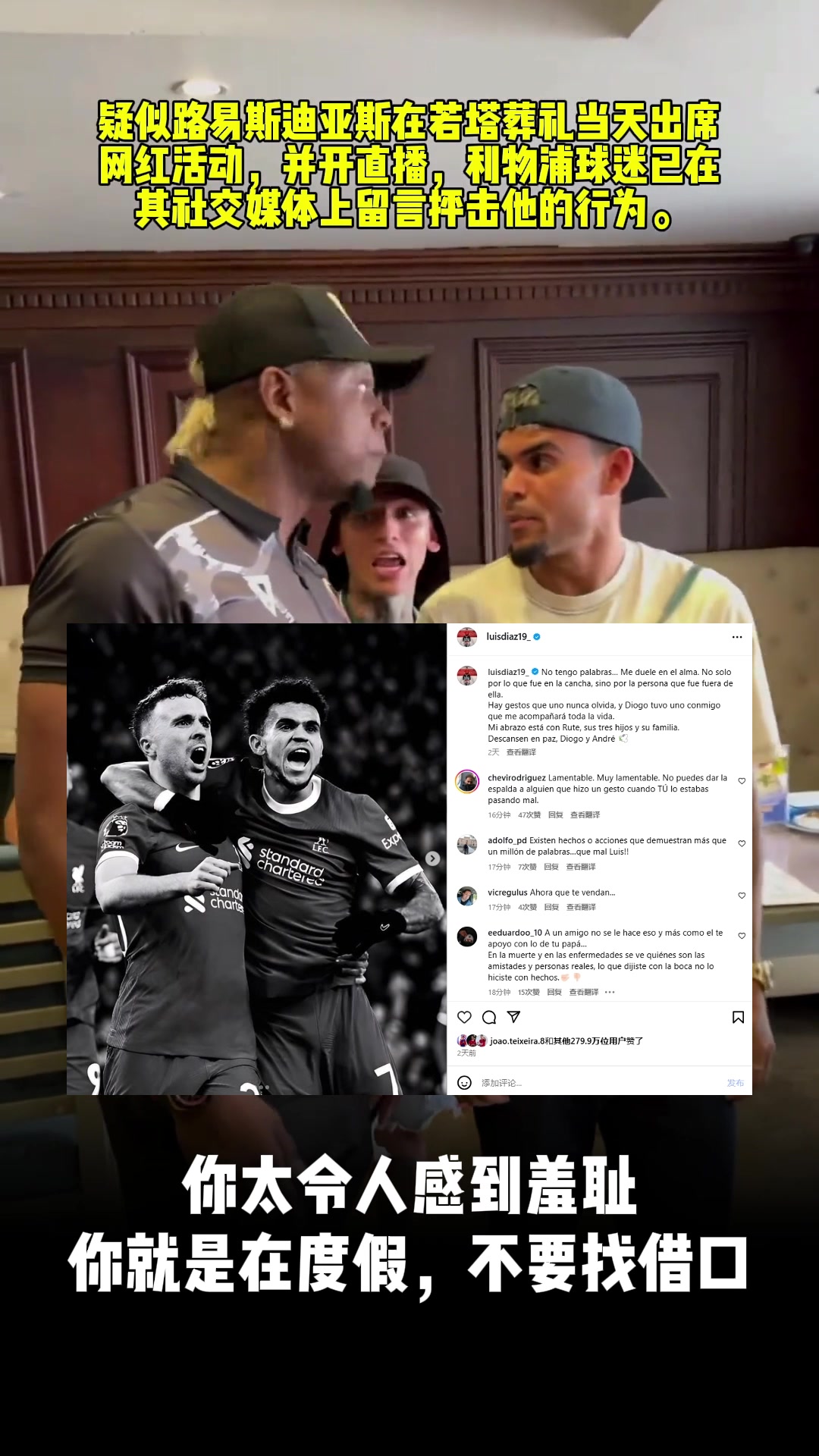 球迷怒了迪亚斯没去若塔葬礼而是参加网红活动