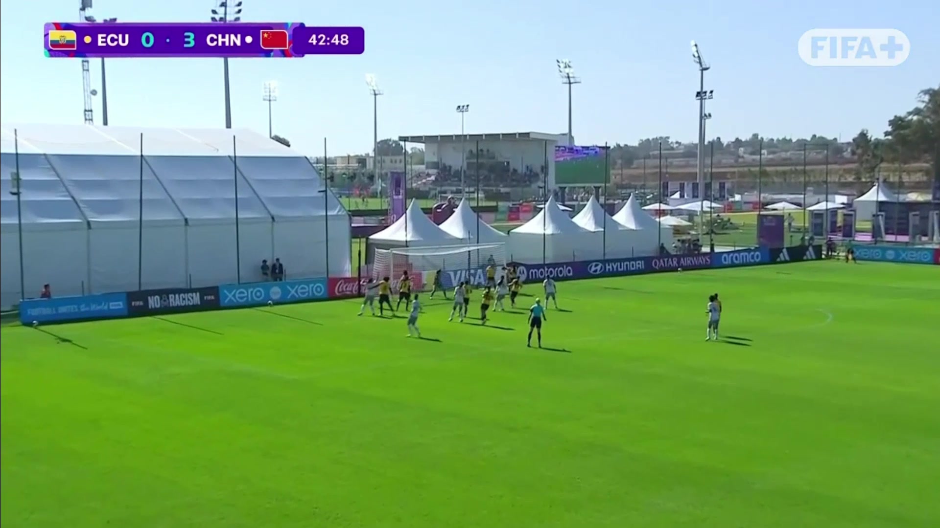 陈睿琳小角度破门U17中国女足3-0领先厄瓜多尔