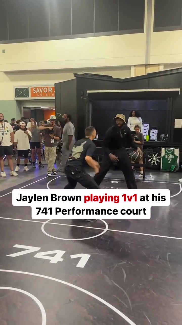 杰伦-布朗和球迷玩单挑丝滑运球操作轻松投篮得分
