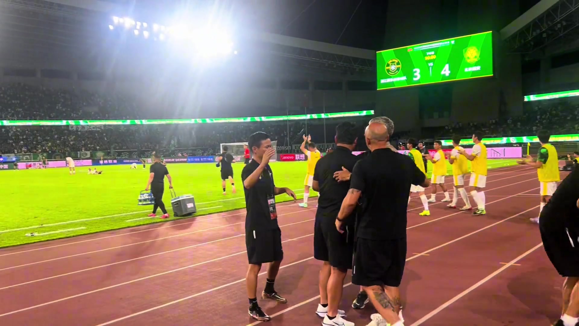 艰难实拍终场哨响瞬间塞蒂恩和国安教练组长舒一口气