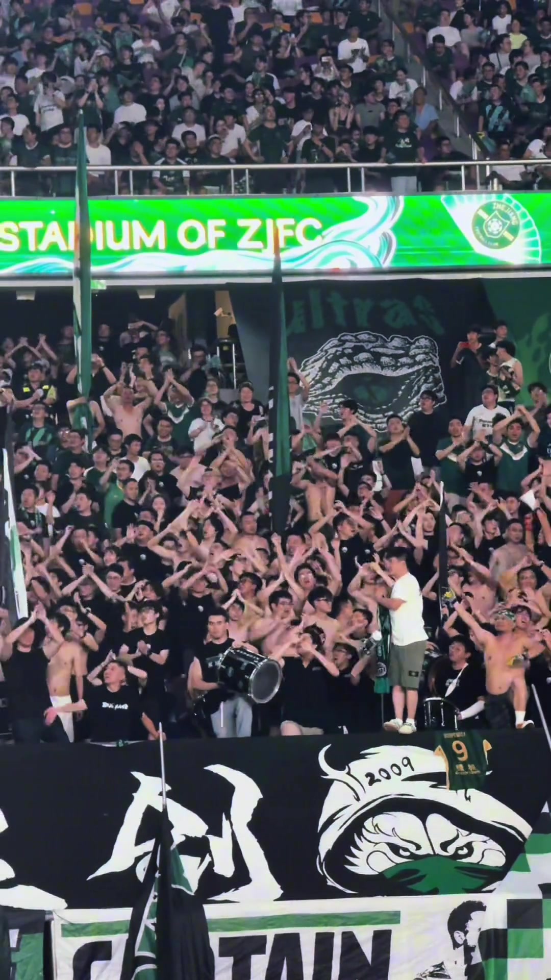 现场实拍国安远征军回击浙江死忠看台绿色旗帜一盘散沙