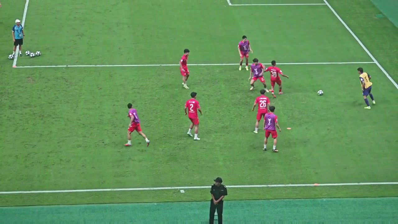 现场国安球迷中场休息看看人家的替补训练再看看自己的