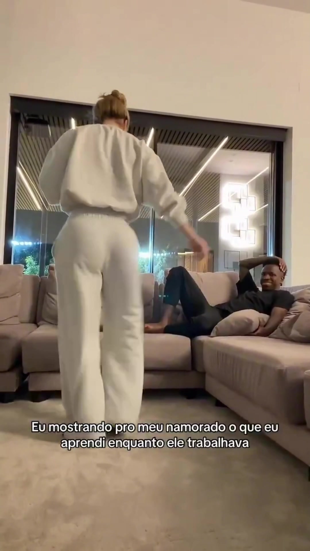 享受二人世界女友弗吉尼亚跳舞逗维尼修斯开心